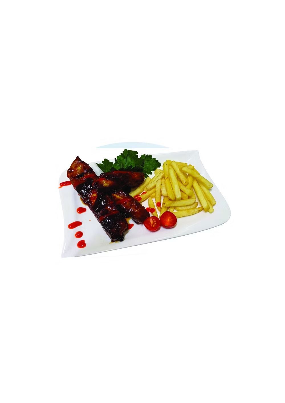 Рёбра свиные, картофель фри, зелень, кунжут.